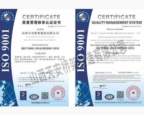 山西天安橋架制造有限公司是一家生產電纜橋架、母線槽的大型廠家,主要生產:槽式橋架、托盤式橋架、梯級式橋架、大跨距橋架、母線槽有空氣型、密集型、耐火型、鋁合金等以及通風管、可根據(jù)客戶要求定制各種型號各種規(guī)格,表面處理有熱鍍鋅、防火噴塑、防火漆、熱鍍鋅等,產品廣泛應用于石油、化工、治金、電力、紡織、通訊、高層建筑等各個領域。產品具有外形美觀,耐腐蝕性強,安裝靈活方便,品種齊全等特點。
